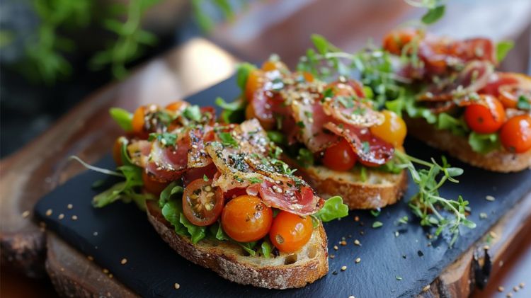 Брускета із хамоном і помідорами черрі (1шт.)Брускета із вершковим сиром і лососем