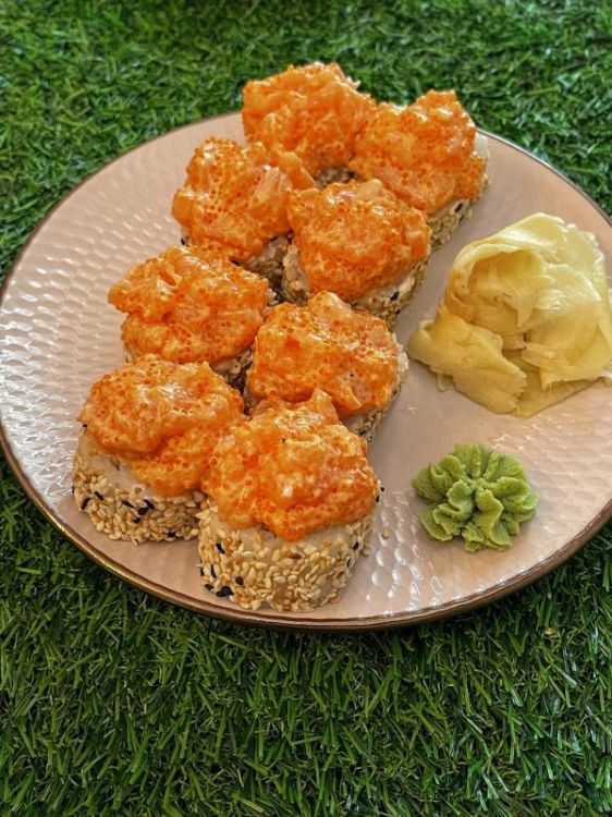 Вулкан «Tatami-sushi»Рис, норі, сир Філадельфія, огірок, Авокадо, помідор, кунжут, ікра Тобіко, лосось, соус спайсівага 300 гцена : 320 грн доставка по Измаилу: 120 грн