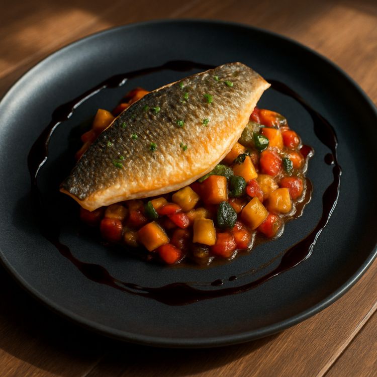 з рататуєм із овочів: кабачок, томати, баклажан, болгарський перець. (140г/150г)