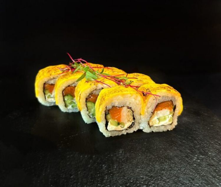 Чікаго «Tatami-sushi»Рис, норі, лосось ,креветка, сир філадельфія, японський омлет, огірок, сир плавлений Чеддер (опалений)Вага 260 гцена : 280 грн доставка по Измаилу: 120 грн