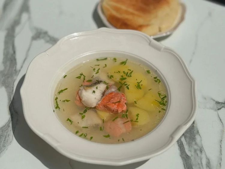 Юха «Гурман»Наваристий бульйон з лосося і судака, подається з саламуром і пітою400гцена : 285 грн доставка по Измаилу: 120 грн