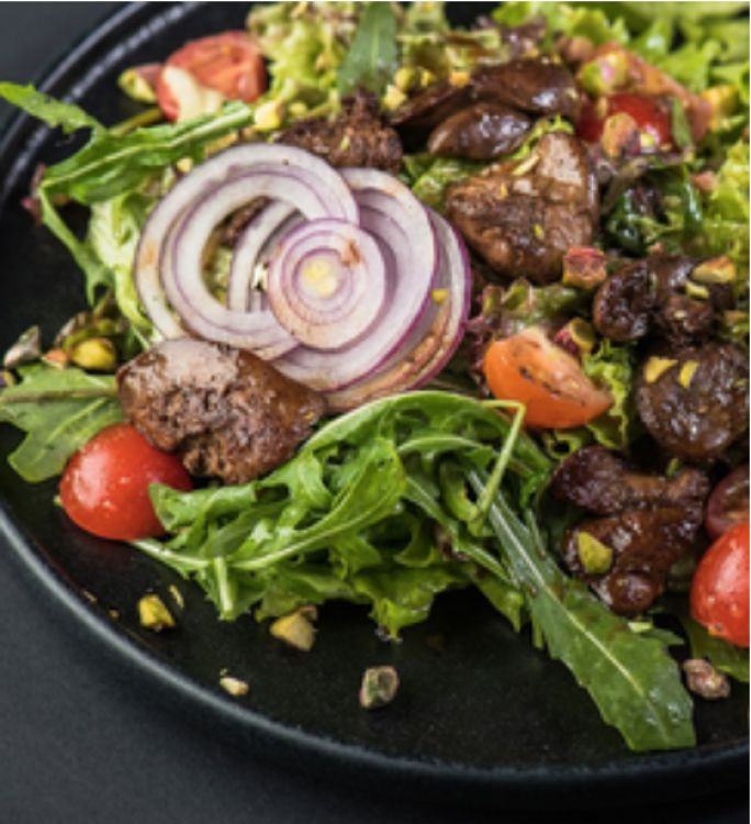 Салат «Бажання гурмана» «Хуторок»печінка кур., мікс салата, пекінська кап., журавлина, кедровий горіхцена : 220 грн доставка по Измаилу: 120 грн