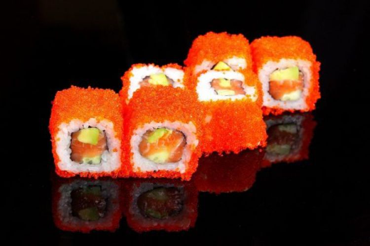 Каліфорнія з лососем «Tatami-sushi»Рис, норі, огірок, авокадо, лосось, ікра ТобікоВага - 230 г.цена : 260 грн доставка по Измаилу: 120 грн