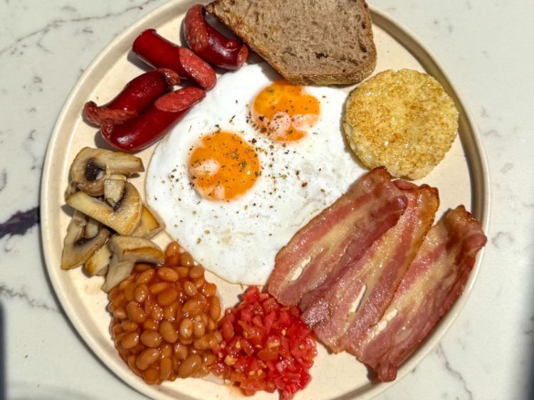 АНГЛІЙСЬКИЙ СНІДАНОК «Пармезан»з двох яєць, з беконом, міні ковбасками, томати кімчі, квасолею, печерицями, хашбрауном та підсмаженим хлібом300 гцена : 274 грн доставка по Измаилу: 120 грн