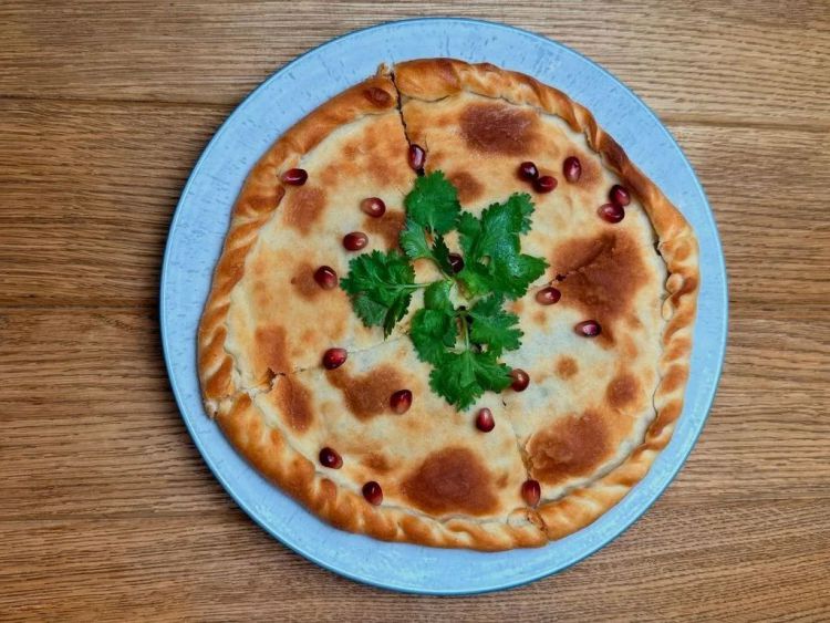 «Хінкальня»Традиційна грузинска паляниця із соковитим м'ясом телятини та свинини, приправлена ароматними спеціями, з додаванням печериць, болгарського перця та цибулі.