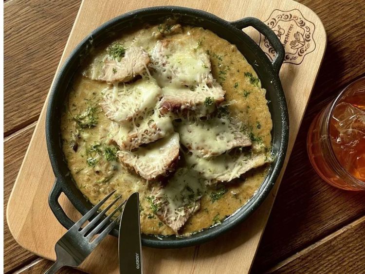 М'ясо по-голландськи «CheBurek»Свинина, печериці, цибуля, вершковий соус, пармезан, тостовий хліб. 300гцена : 453 грн доставка по Измаилу: 120 грн