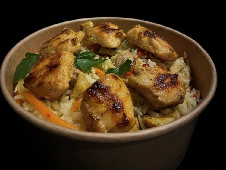 Рис з куркою та овочами «CAPO_food»Рис варений, куряче стегно, болгарський перець, печериці, цибуля фіолетова, морква, соняшникова олія, спеції.550гцена : 195 грн доставка по Измаилу: 120 грн