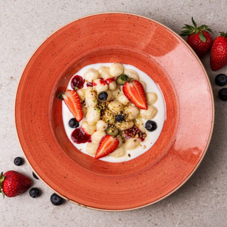 Ліниві вареники з сиру з ягодами та сметаною (300 г) «Celentano_Delta»(300 г)цена : 210 грн доставка по Измаилу: 120 грн