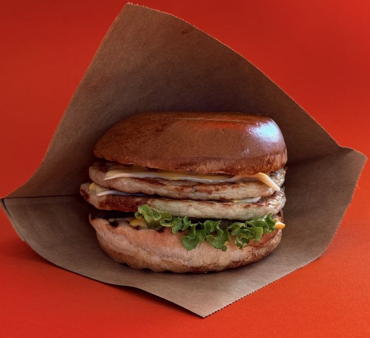 Мега бургер курячий «Fresh bar»2 котлети курячі, соус, салат, помідор, огірок мар., цибуля мар., сир чеддерцена : 114 грн доставка по Измаилу: 120 грн