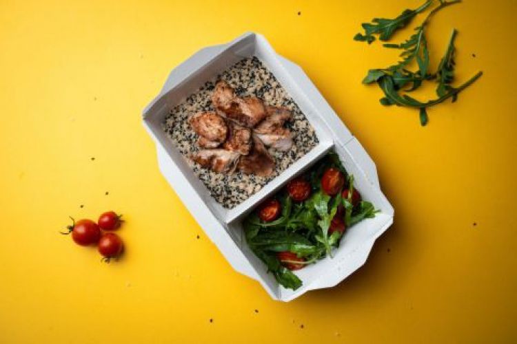 Бізнес-ланч 14 «NaDivane»Вага: 500грКіноа, сир моцарела, вершки, куряче стегно, рукола, шпинат, чері.цена : 230 грн доставка по Измаилу: 120 грн