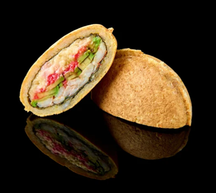 Бургер з тигровою креветкою «Sushi Zoom»(норі, рис, тигрова креветка, сирна маса для запікання, авокадо, ікра масаго, сухарі панко, кляр, соус)315 гцена : 349 грн доставка по Измаилу: 120 грн