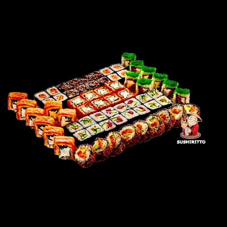 “Імперія” «SushiRitto»8 ролів: Філадельфія із зеленою цибулею, Каліфорнія, Бонсай, Темпура Філадельфія, Сяке макі, Унагі макі, Текка макі, Каппа макі.Вага: 1510 гр.цена : 1200 грн доставка по Измаилу: 120 грн